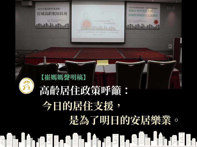 【崔媽媽聲明稿】高齡居住政策呼籲:今日的居住支援,是為了明日的安居樂業
